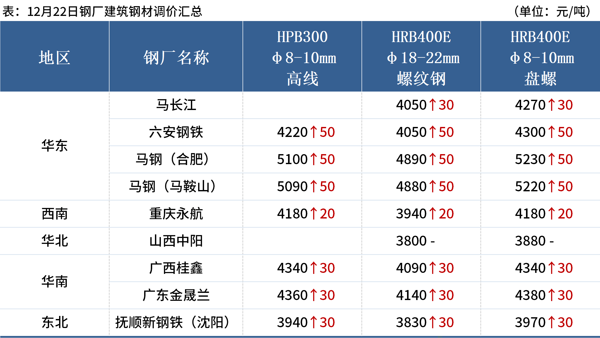 上周五(12月22日),全國(guó)累計(jì)8家鋼廠發(fā)布調(diào)價(jià)信息,整體調(diào)幅在0-50元/噸。